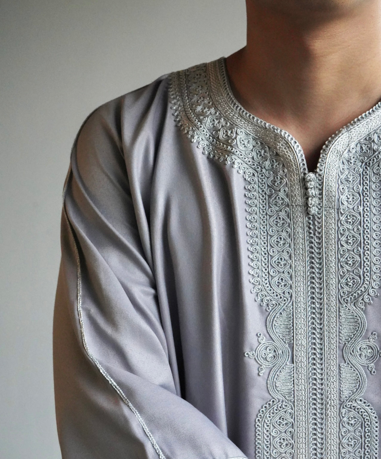 Maghrebi Thobe — Light Grey (Cotton & Polyester)